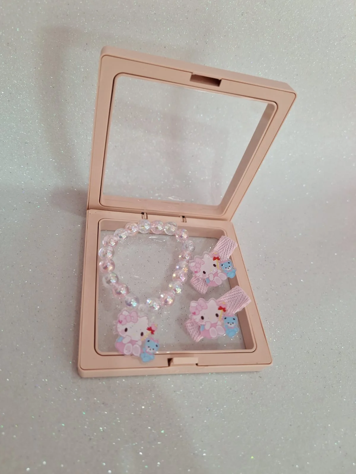 Kit Pulseira + brincos de pressão Hello Kit